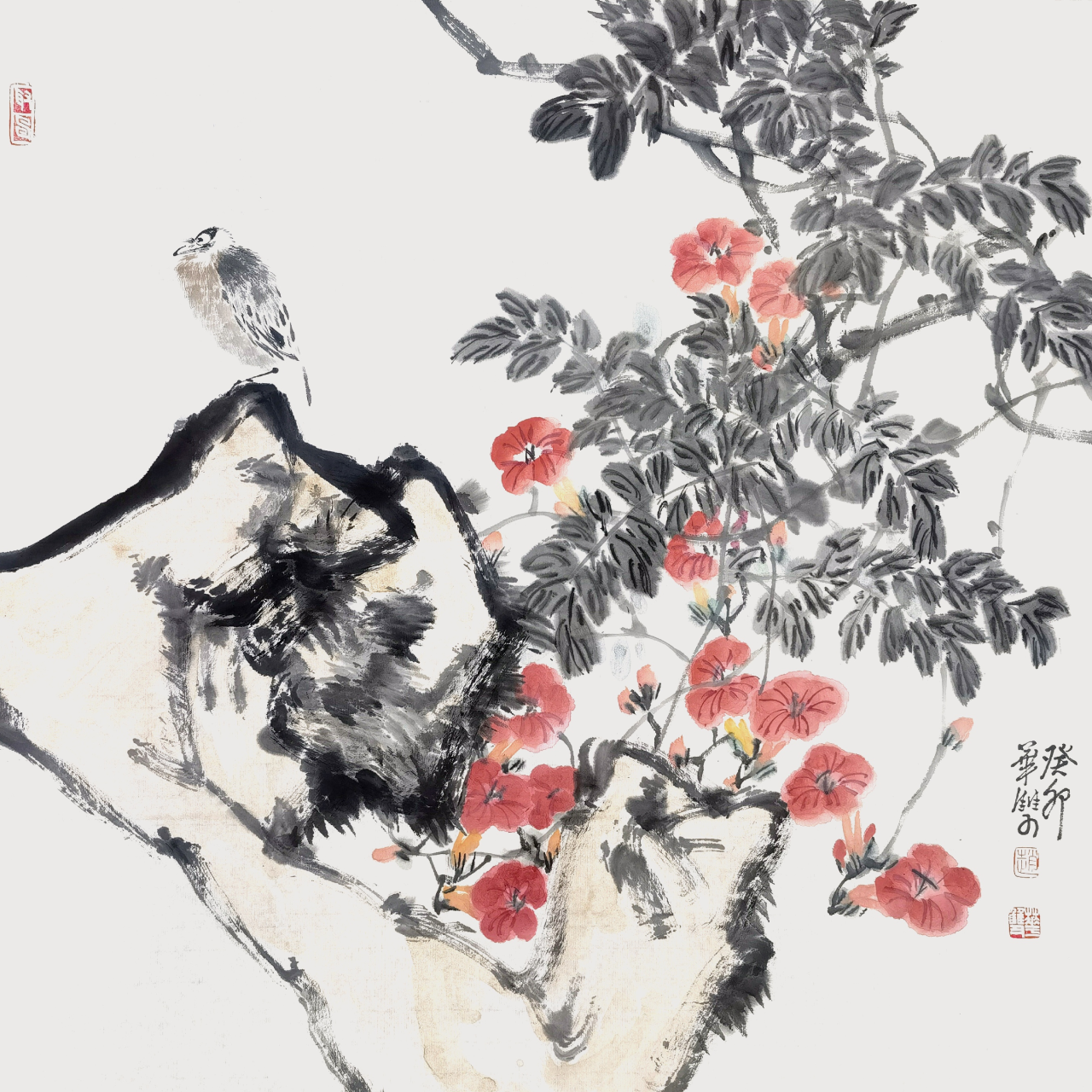 Zhao Huashuang’s painting : Lingxiao Overflowing with Fragrance-凌霄溢香