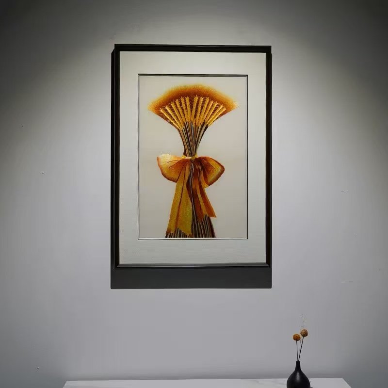 The main material of this product is mulberry silk, and it is framed with solid wood and mirrored glass.